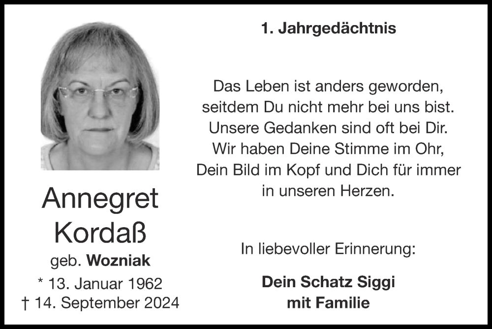 Hier finden Sie alle Traueranzeigen aus der Zeitung, die bisher für Annegret Kordaß erschienen sind. Weitere Traueranzeigen, die in der Zeitung erscheinen, werden hier ebenfalls aufgelistet