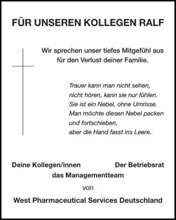 Hier finden Sie alle Traueranzeigen aus der Zeitung, die bisher für FÜR UNSEREN RALF erschienen sind. Weitere Traueranzeigen, die in der Zeitung erscheinen, werden hier ebenfalls aufgelistet