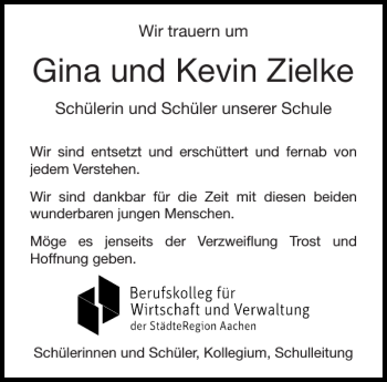 Hier finden Sie alle Traueranzeigen aus der Zeitung, die bisher für Gina und Kevin Zielke erschienen sind. Weitere Traueranzeigen, die in der Zeitung erscheinen, werden hier ebenfalls aufgelistet