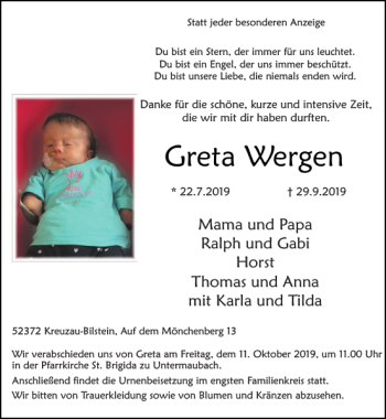 Hier finden Sie alle Traueranzeigen aus der Zeitung, die bisher für Greta Wergen erschienen sind. Weitere Traueranzeigen, die in der Zeitung erscheinen, werden hier ebenfalls aufgelistet