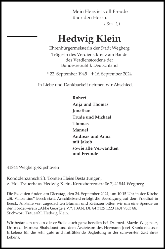 Hier finden Sie alle Traueranzeigen aus der Zeitung, die bisher für Hedwig Klein erschienen sind. Weitere Traueranzeigen, die in der Zeitung erscheinen, werden hier ebenfalls aufgelistet