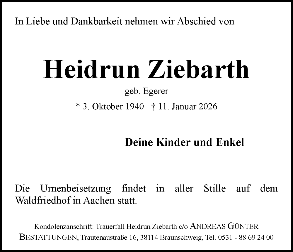 Hier finden Sie alle Traueranzeigen aus der Zeitung, die bisher für Heidrun Ziebarth erschienen sind. Weitere Traueranzeigen, die in der Zeitung erscheinen, werden hier ebenfalls aufgelistet