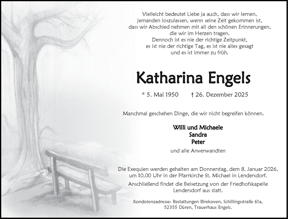 Hier finden Sie alle Traueranzeigen aus der Zeitung, die bisher für Katharina Engels erschienen sind. Weitere Traueranzeigen, die in der Zeitung erscheinen, werden hier ebenfalls aufgelistet