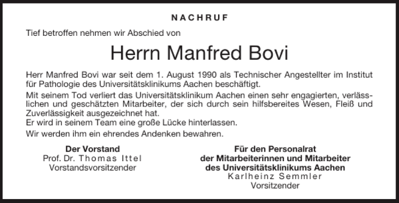Hier finden Sie alle Traueranzeigen aus der Zeitung, die bisher für Manfred Bovi erschienen sind. Weitere Traueranzeigen, die in der Zeitung erscheinen, werden hier ebenfalls aufgelistet