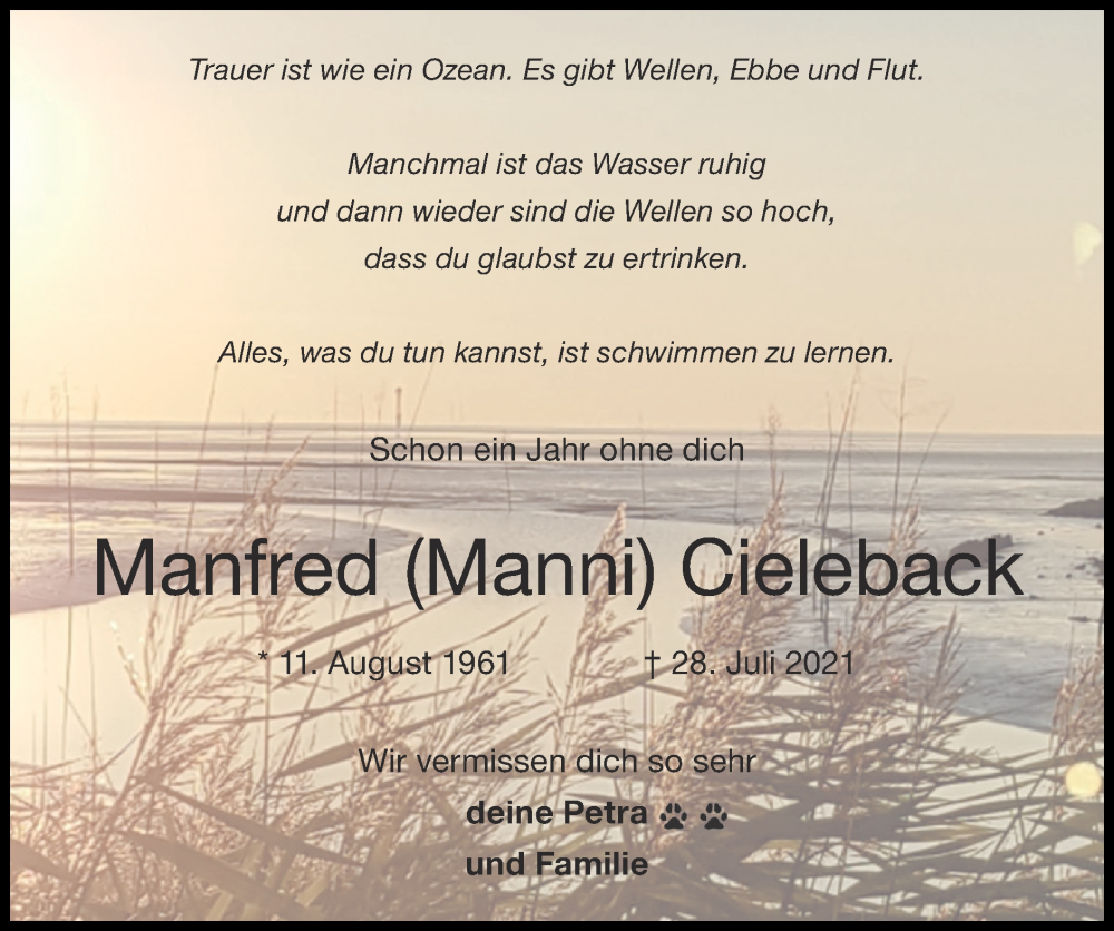Hier finden Sie alle Traueranzeigen aus der Zeitung, die bisher für Manfred Cieleback erschienen sind. Weitere Traueranzeigen, die in der Zeitung erscheinen, werden hier ebenfalls aufgelistet