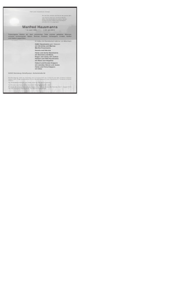 Hier finden Sie alle Traueranzeigen aus der Zeitung, die bisher für Manfred Hausmanns erschienen sind. Weitere Traueranzeigen, die in der Zeitung erscheinen, werden hier ebenfalls aufgelistet