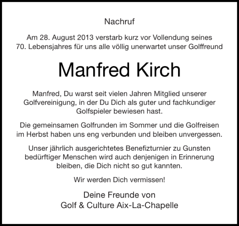 Hier finden Sie alle Traueranzeigen aus der Zeitung, die bisher für Manfred Kirch erschienen sind. Weitere Traueranzeigen, die in der Zeitung erscheinen, werden hier ebenfalls aufgelistet