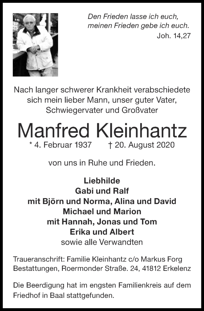 Hier finden Sie alle Traueranzeigen aus der Zeitung, die bisher für Manfred Kleinhantz erschienen sind. Weitere Traueranzeigen, die in der Zeitung erscheinen, werden hier ebenfalls aufgelistet