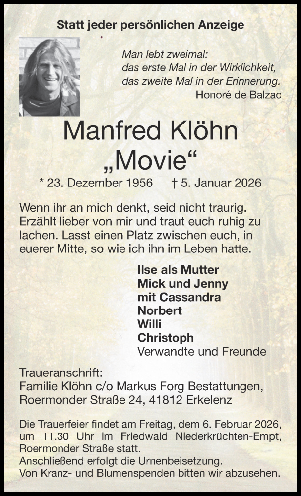 Hier finden Sie alle Traueranzeigen aus der Zeitung, die bisher für Manfred Klöhn erschienen sind. Weitere Traueranzeigen, die in der Zeitung erscheinen, werden hier ebenfalls aufgelistet