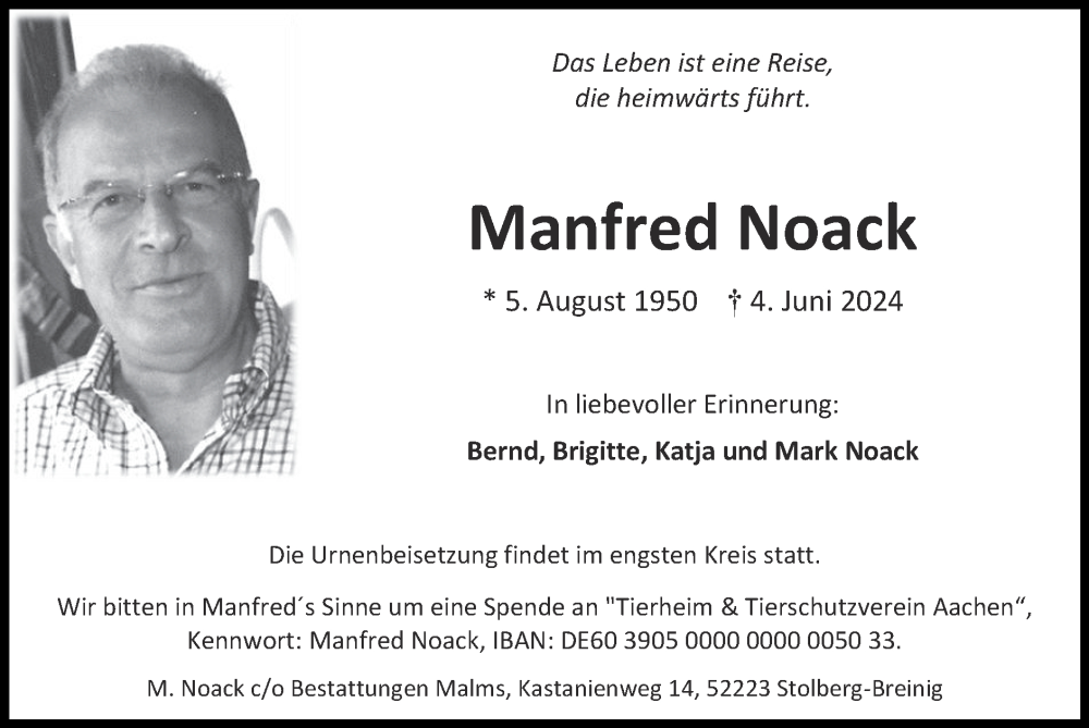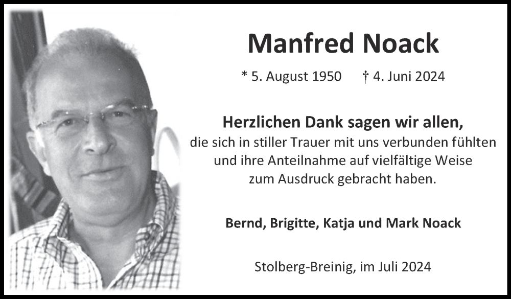 Hier finden Sie alle Traueranzeigen aus der Zeitung, die bisher für Manfred Noack erschienen sind. Weitere Traueranzeigen, die in der Zeitung erscheinen, werden hier ebenfalls aufgelistet