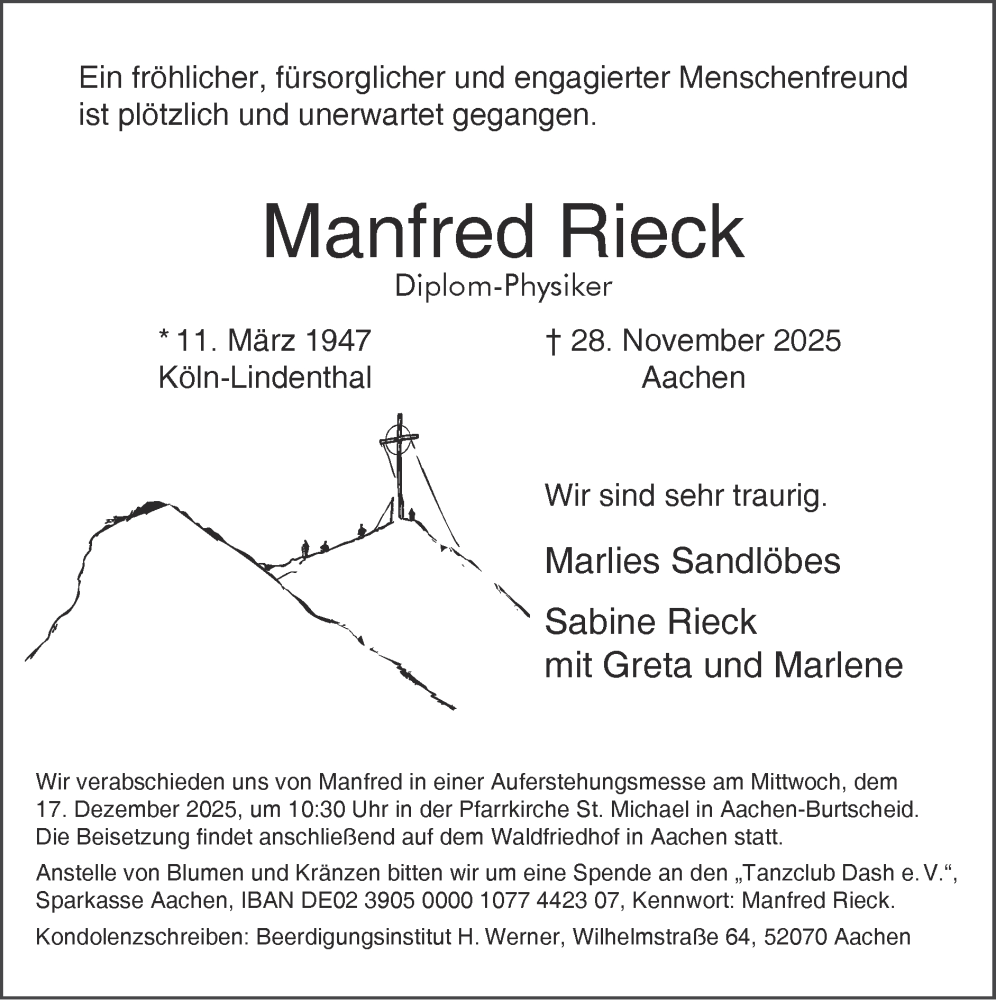 Hier finden Sie alle Traueranzeigen aus der Zeitung, die bisher für Manfred Rieck erschienen sind. Weitere Traueranzeigen, die in der Zeitung erscheinen, werden hier ebenfalls aufgelistet
