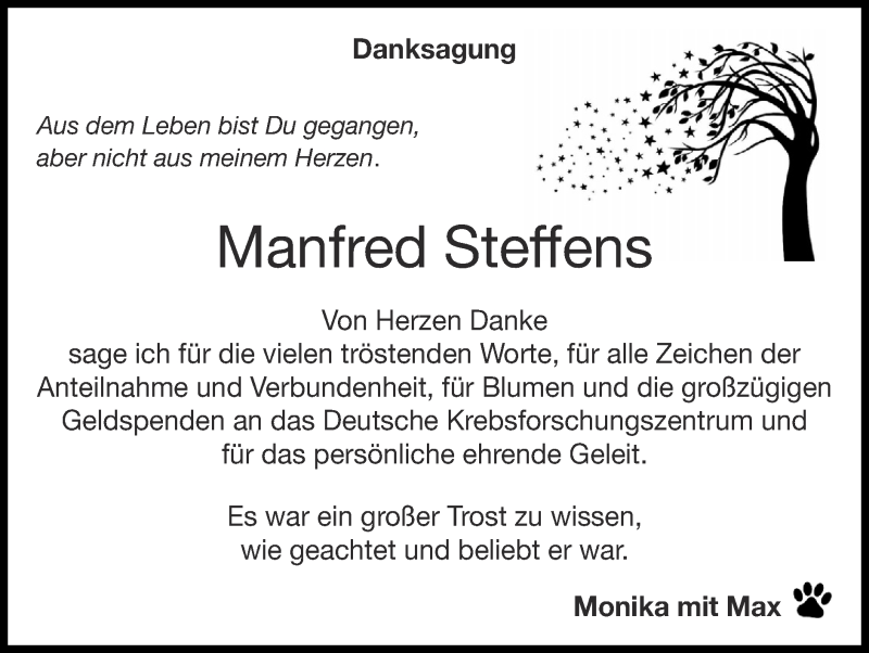 Hier finden Sie alle Traueranzeigen aus der Zeitung, die bisher für Manfred Steffens erschienen sind. Weitere Traueranzeigen, die in der Zeitung erscheinen, werden hier ebenfalls aufgelistet