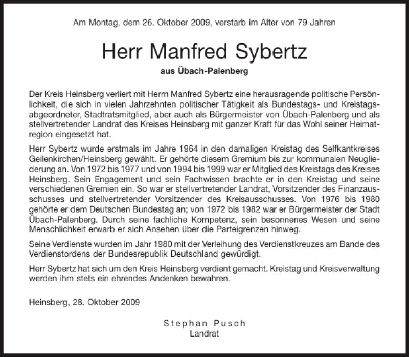 Hier finden Sie alle Traueranzeigen aus der Zeitung, die bisher für Manfred Sybertz erschienen sind. Weitere Traueranzeigen, die in der Zeitung erscheinen, werden hier ebenfalls aufgelistet