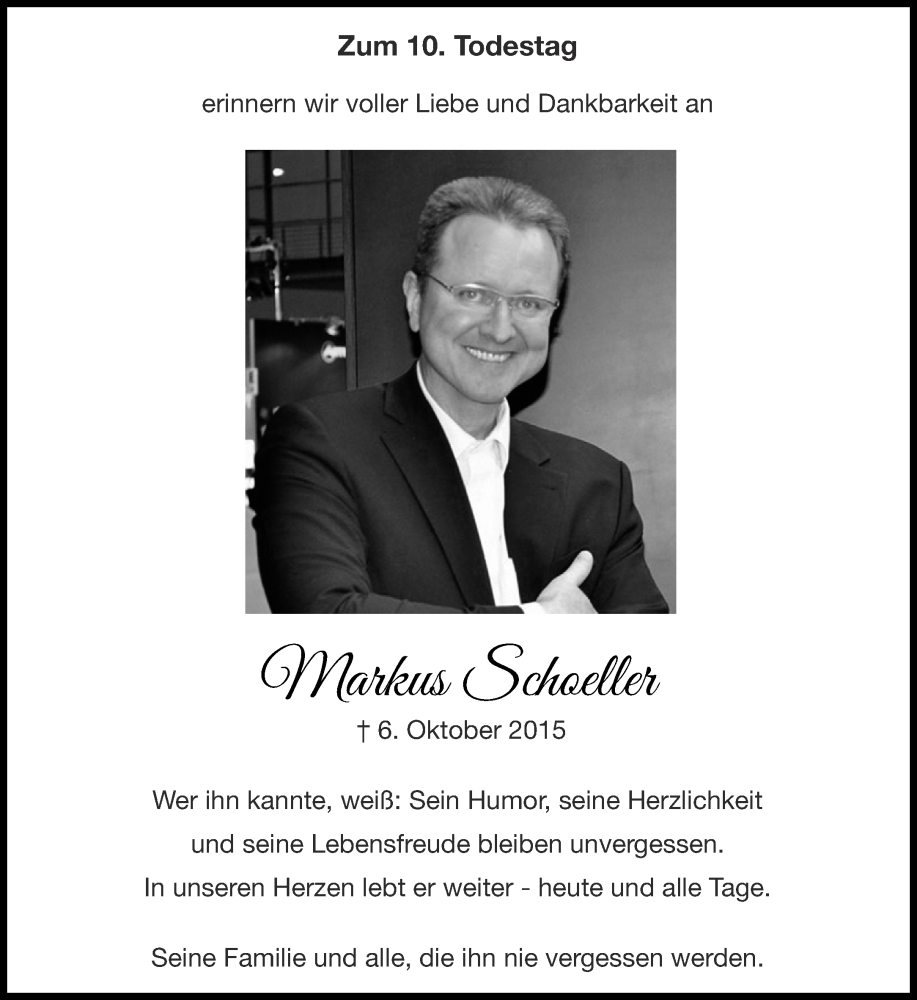Hier finden Sie alle Traueranzeigen aus der Zeitung, die bisher für Markus Schoeller erschienen sind. Weitere Traueranzeigen, die in der Zeitung erscheinen, werden hier ebenfalls aufgelistet