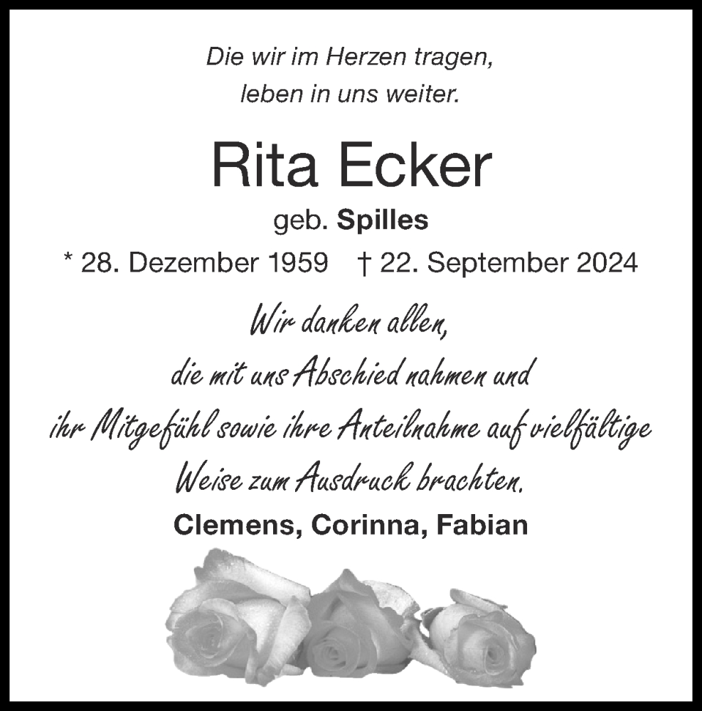 Hier finden Sie alle Traueranzeigen aus der Zeitung, die bisher für Rita Ecker erschienen sind. Weitere Traueranzeigen, die in der Zeitung erscheinen, werden hier ebenfalls aufgelistet