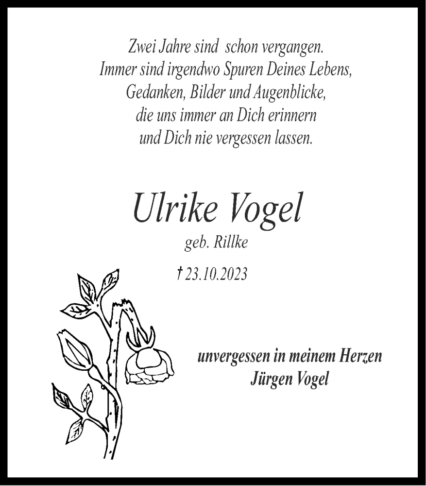 Hier finden Sie alle Traueranzeigen aus der Zeitung, die bisher für Ulrike Vogel erschienen sind. Weitere Traueranzeigen, die in der Zeitung erscheinen, werden hier ebenfalls aufgelistet