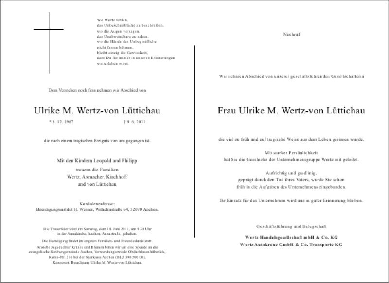 Hier finden Sie alle Traueranzeigen aus der Zeitung, die bisher für Ulrike M. Wertz-von Lüttichau erschienen sind. Weitere Traueranzeigen, die in der Zeitung erscheinen, werden hier ebenfalls aufgelistet