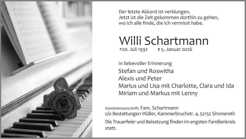 Hier finden Sie alle Traueranzeigen aus der Zeitung, die bisher für Willi Schartmann erschienen sind. Weitere Traueranzeigen, die in der Zeitung erscheinen, werden hier ebenfalls aufgelistet